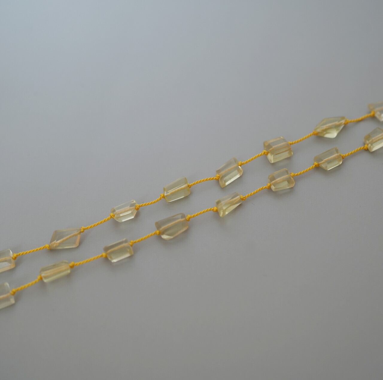 タンブルカットのレモンクォーツを繋いだネックレス。