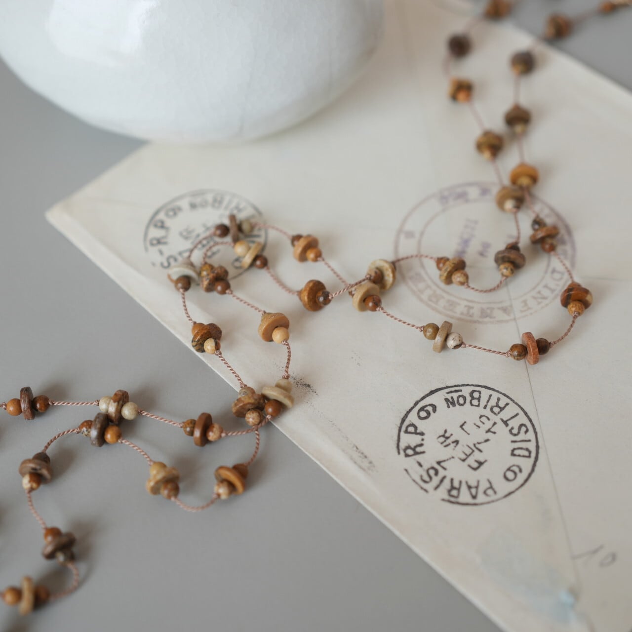 ジャスパーをシルクコードで繋いだネックレス。