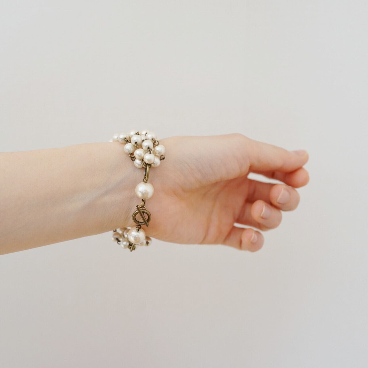 素材:コットンパール、ヴィンテージビーズ、真鍮にメッキ