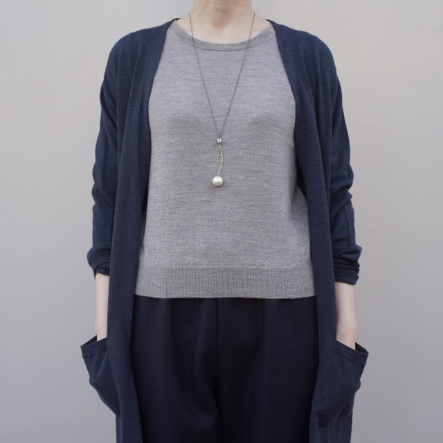 モチーフの縦長ラインは美しく、ころんとしたコットンパールは愛らしく、どんなスタイルにも合わせやすい。