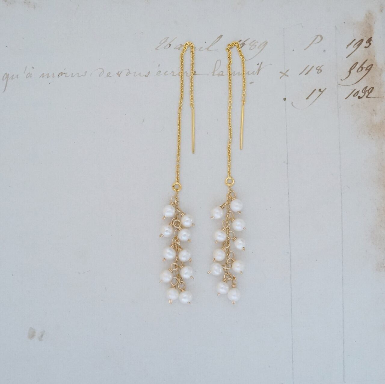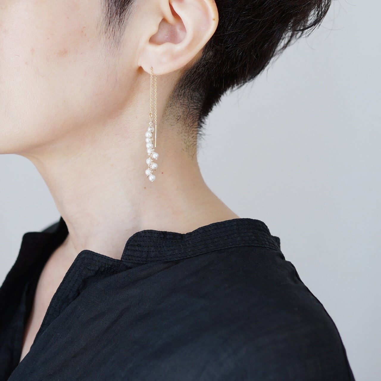 小さな粒の上質な淡水パールのが揺れるアメリカンピアス。