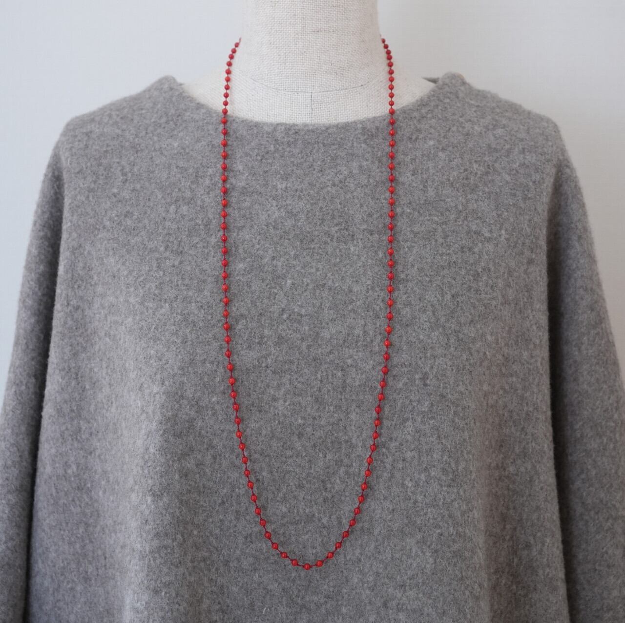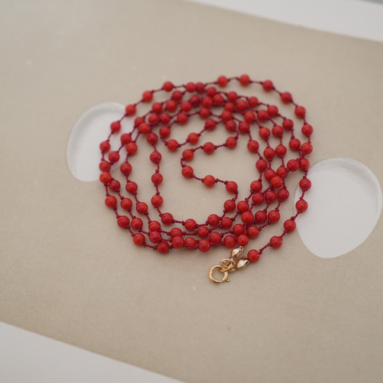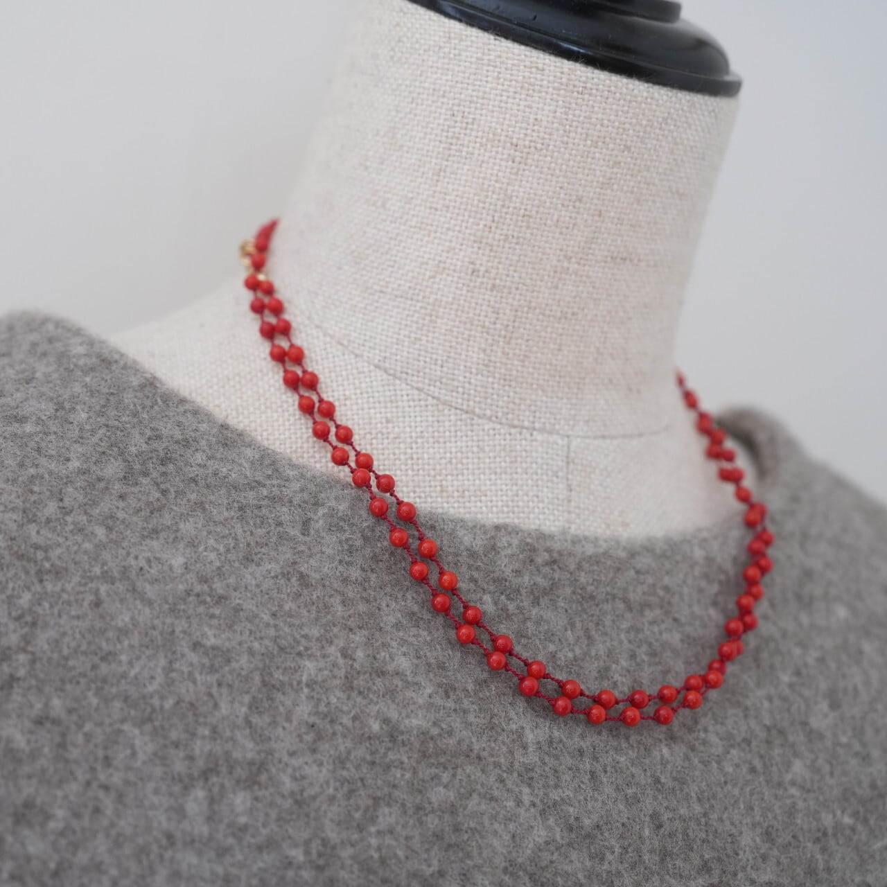 真っ赤な珊瑚を繋いだネックレス。しなやかで軽い着け心地です。
