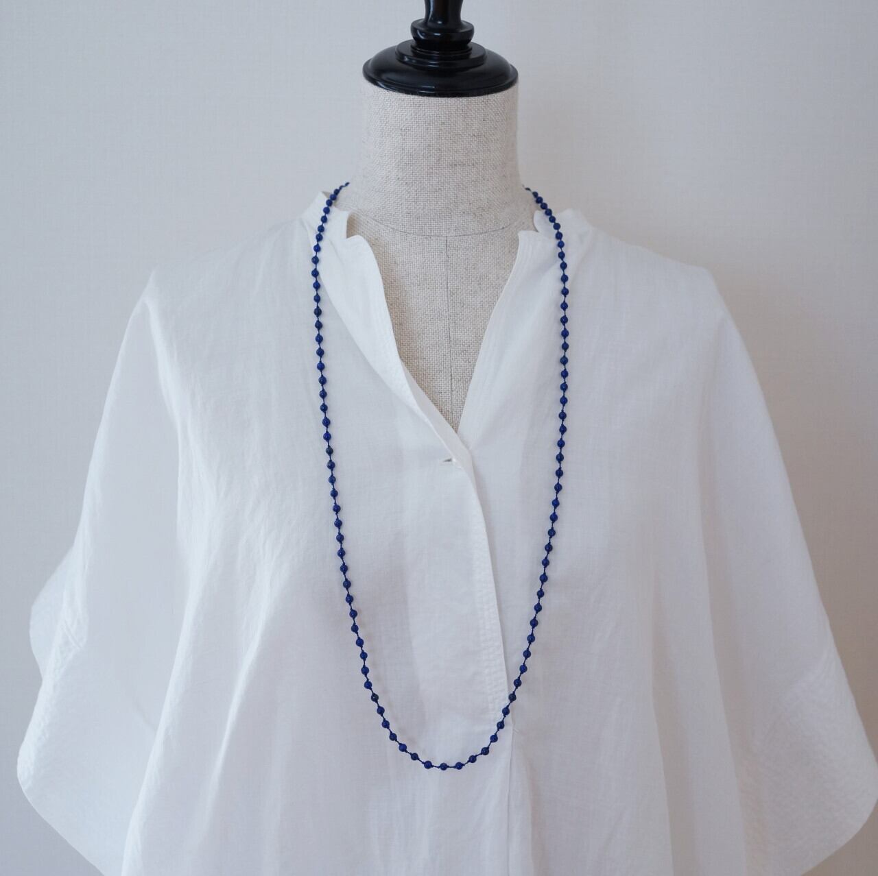 発色の良いラピスラズリをシルクコードで繋いだネックレス。