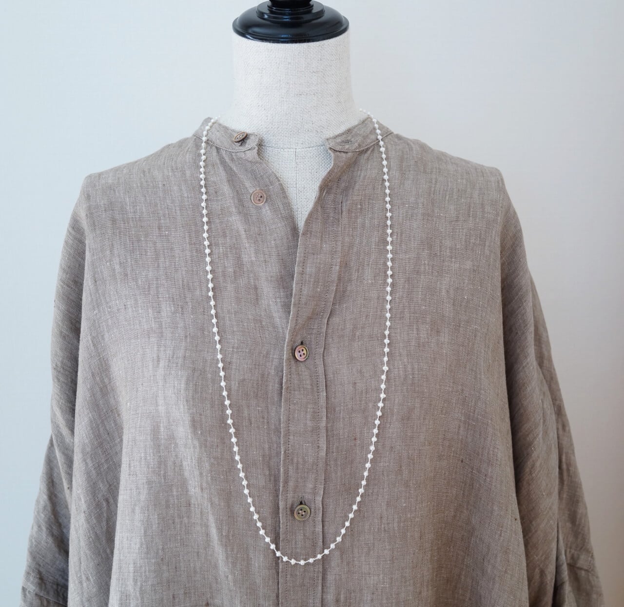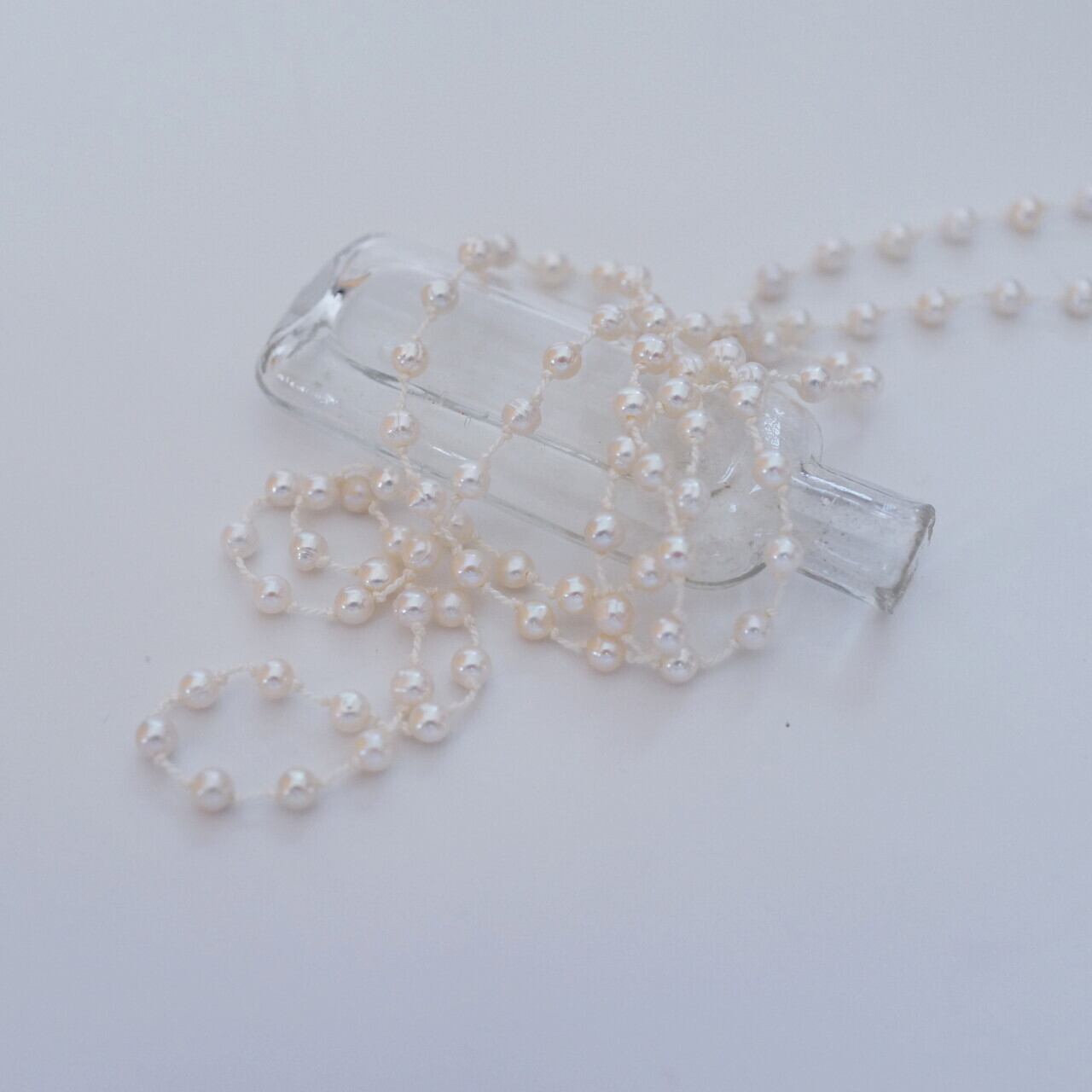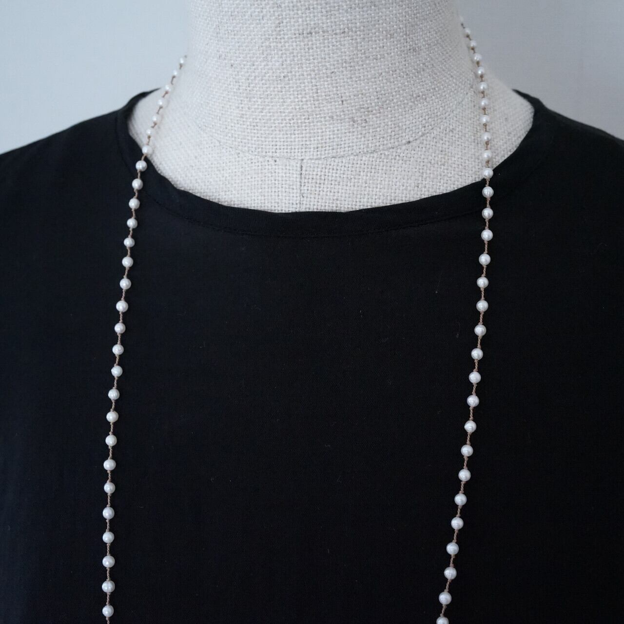 小粒の淡水パールを、ホワイトのシルクコードで繋いだネックレス。
