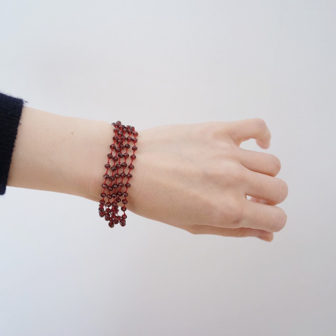 そのままロングネックレスとしてはもちろん、2重にして短めのネックレス、ぐるぐる巻いてブレスレットとしても楽しめます。