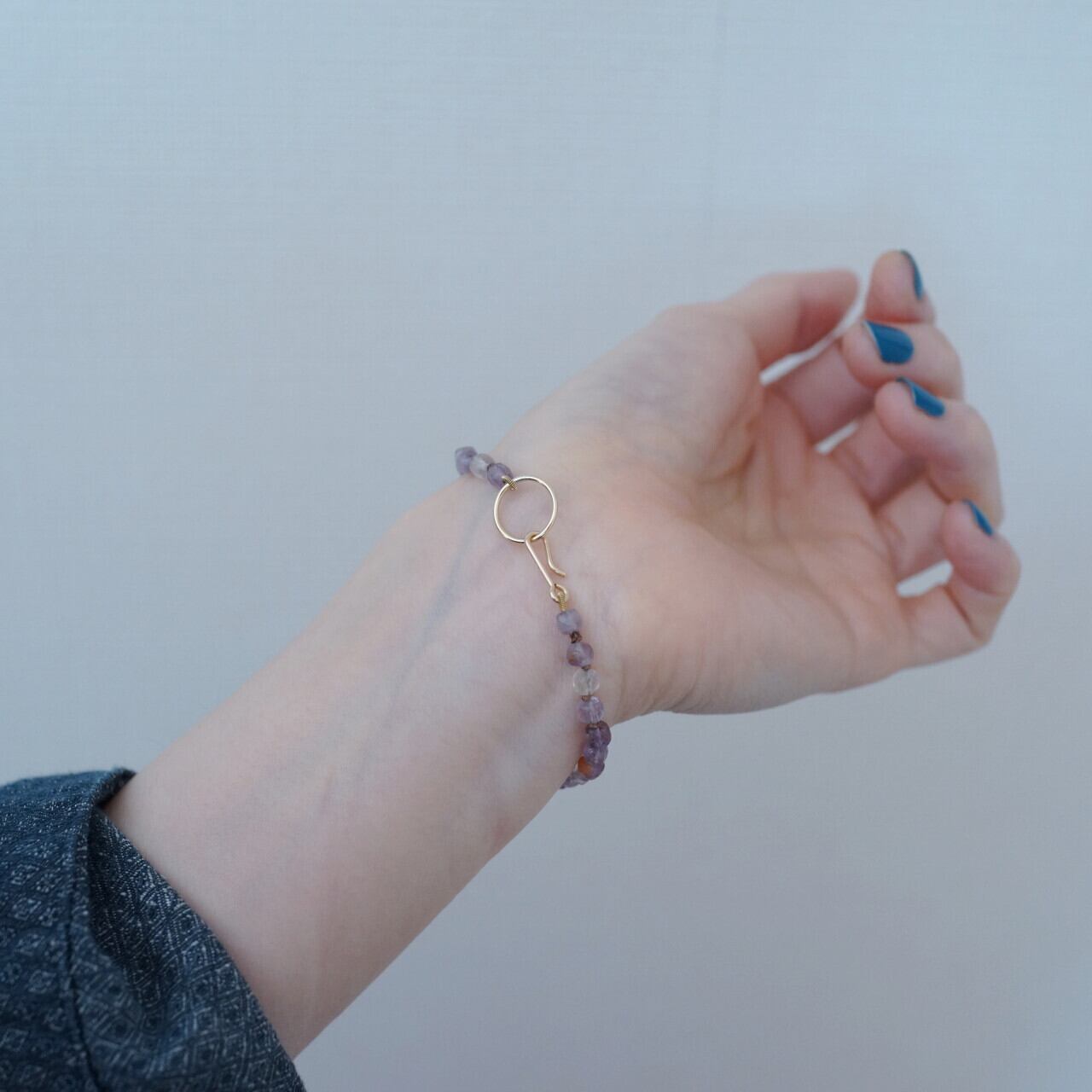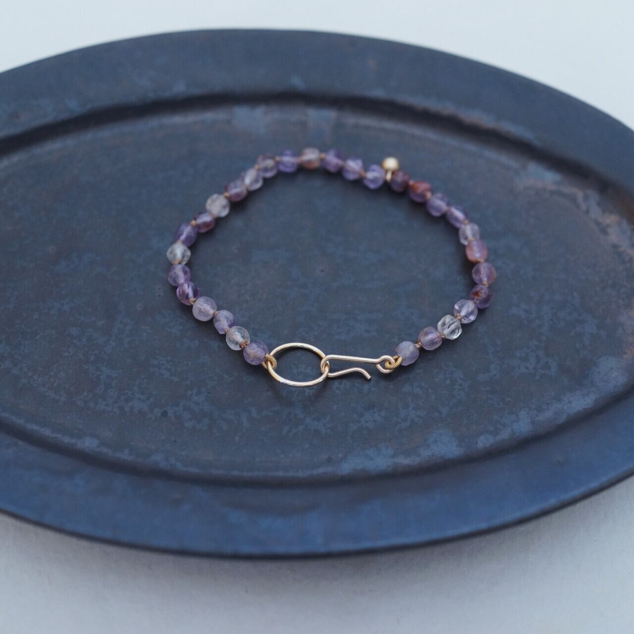 素材:アメジスト、シルクコード、14Kゴールドフィルド(留め具・ビーズ)