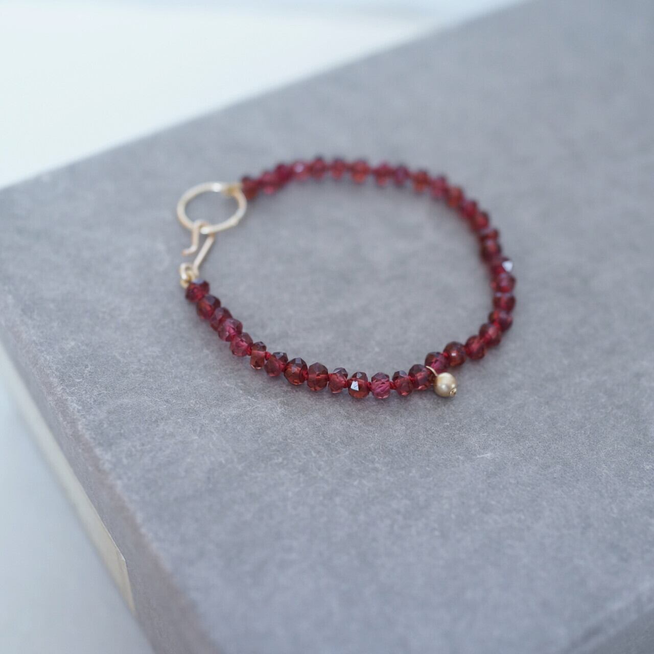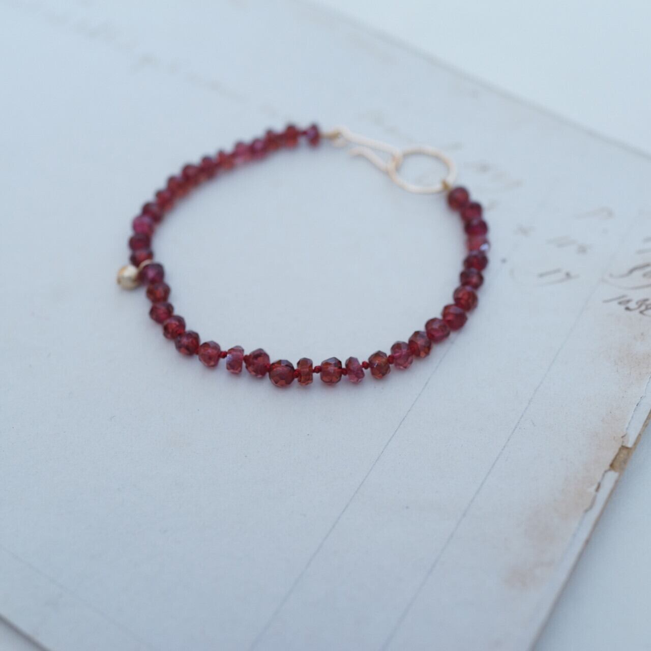 素材:ガーネット、シルクコード、14Kゴールドフィルド(留め具・ビーズ)