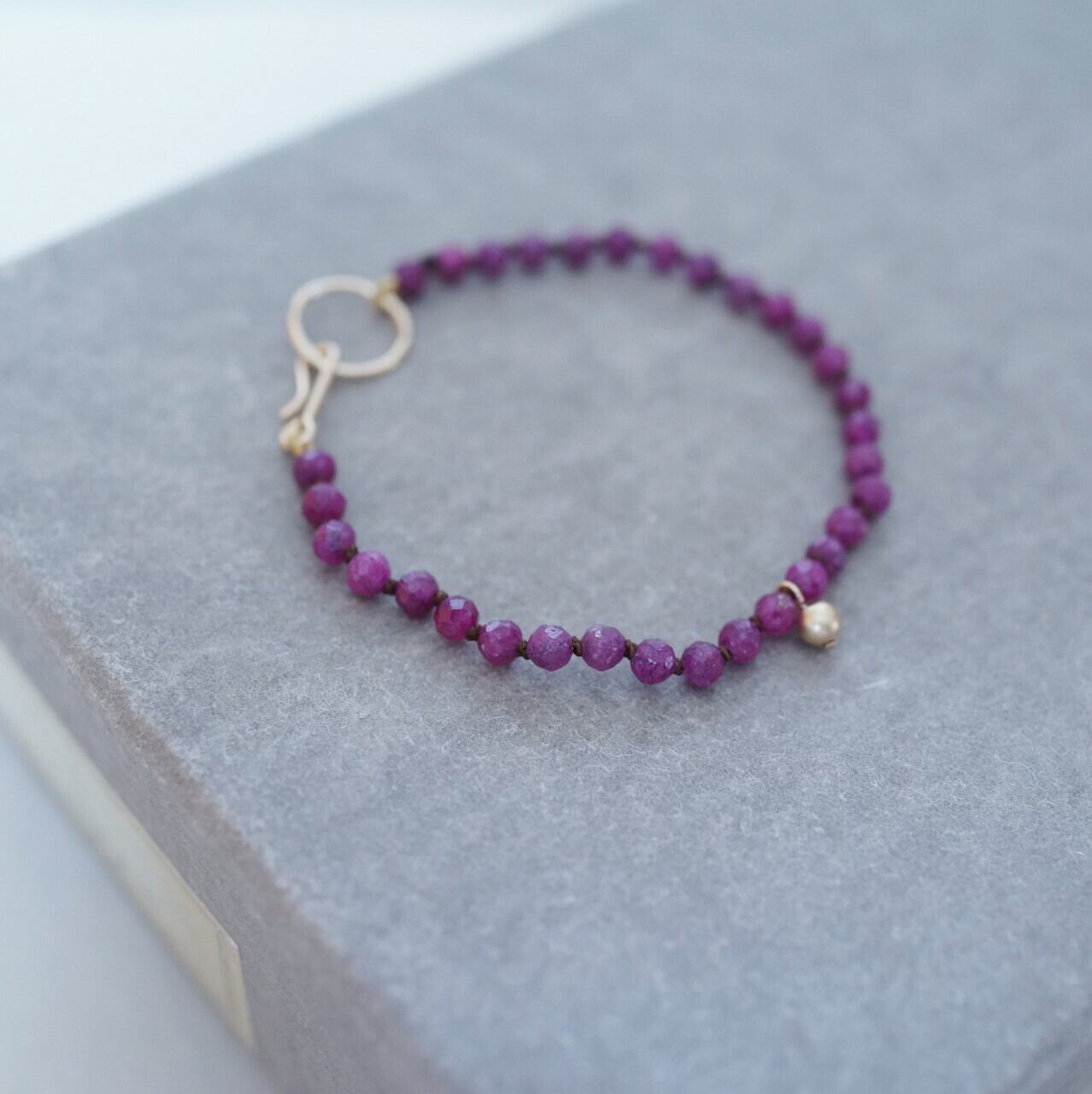 美しい発色のルビーをシルクコードで繋いだブレスレット。