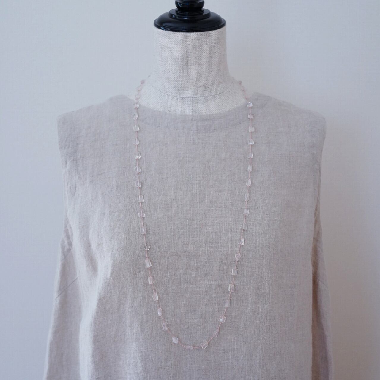 優しい透明感のあるピンクが美しい、一つ一つ形やサイズが異なる石を繋ぎました。