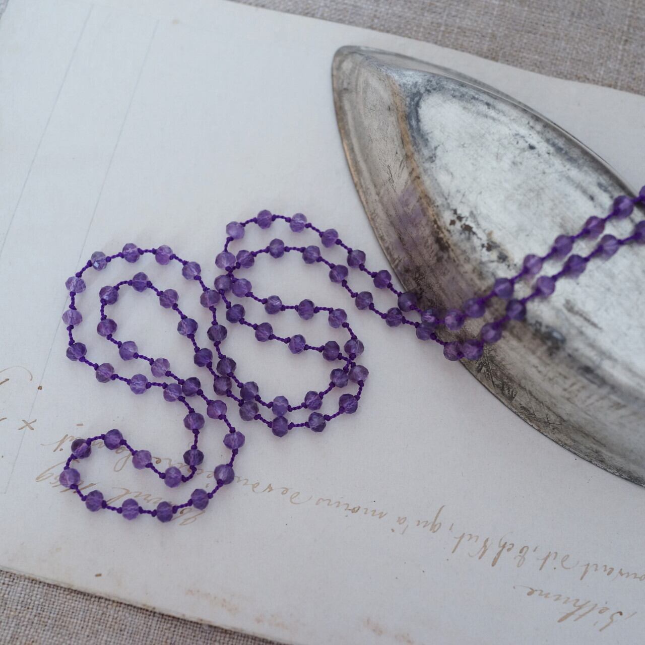 とても美しいアメジストのロングネックレス。