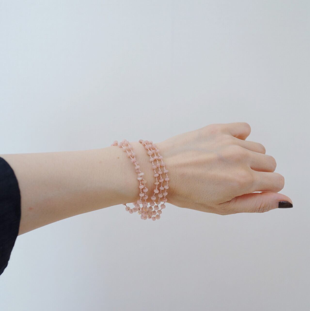 そのままロングネックレスとしてはもちろん、2重にして短めのネックレス、ぐるぐる巻いてブレスレットとしても楽しめます。