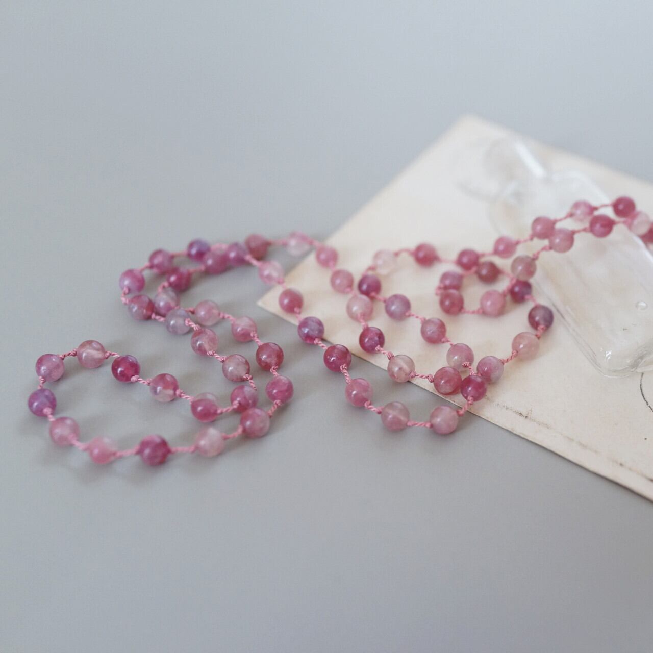 ピンクトルマリンをシルクコードで繋いだネックレス。
