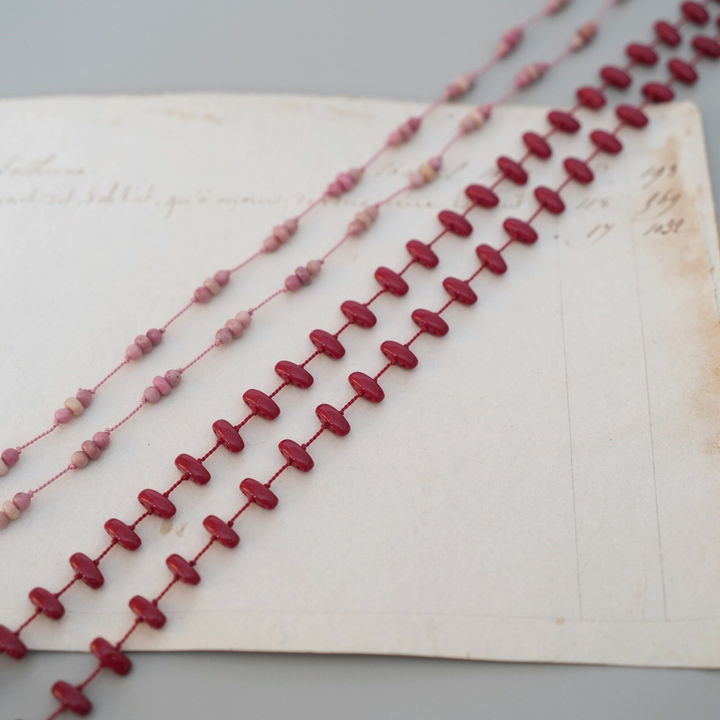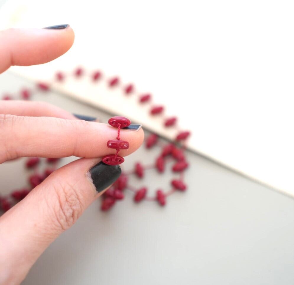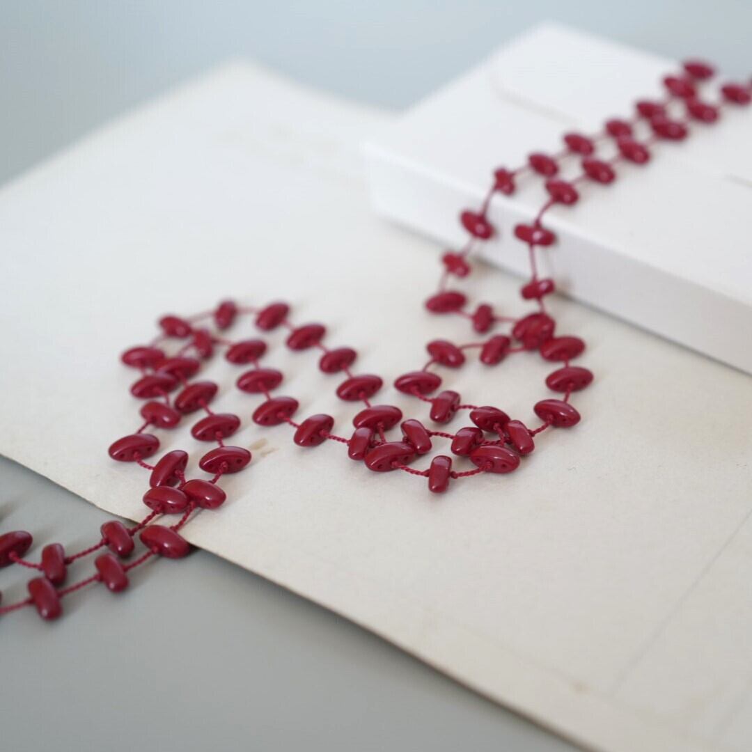 ダークレッドのチェコビーズをシルクコードで繋いだネックレス。